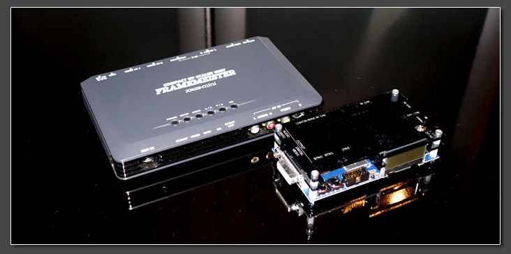 Второй известный мне адаптер - отечественный, изначально заточенный под ZX, но силами энтузиастов для него была создана прошивка и под БК. Насколько я знаю, на БК данный адаптер выдает изображение, в котором отсутствуют некоторые строки, что конечно мало заметно на глаз, но не приятно. Вот ссылка для ознакомления с данным адаптером: ZXKit1 - плата VGA & PALА вот и пример работы на БК через данный адаптер: ZXKit1 + БК00107. Подключение к PC через платы захвата или ТВ-тюнеры.Черно-белую или монохромную картинку (с разъема ТВ) можно вывести практически на любой внутренний ТВ-тюнер, т.к. почти все они имеют композитный видеовход. Если приобрести плату видеозахвата или ТВ-тюнер с RGB-входом, например Behold TV T8, Behold TV H8 или Behold TV A8, то можно выводить с БК цветную картинку на экран PC. Это очень удобно, поскольку не прерывая работу в Windows, картинку можно выводить в окно регулируемого размера, применяя при необходимости различные видео фильтры, доступные в опциях программного обеспечения, поставляемого с ТВ-тюнером. Из плат видеозахвата мне известно об успешных испытаниях модели Datapath Limited DGC103C VisionRGB-Pro1 PCI - бывает одноканальная (Pro1) или двухканальная (Pro2). Приобрести такую плату можно на аукционах типа ebay, по цене в районе $40-50. С подробным протоколом испытаний, содержащим распайку кабеля для подключения БК и прочие нюансы, можете ознакомится в этом документе. 8. Использование масштабаторов/апскейлеров категории премиум.Действительно качественных устройств данной категории в мире не так много, как безымянных китайских адаптеров, найти подробную информацию о них можно в сводных обзорах типа этого или этого. Мне лично довелось опробовать два устройства - framemeister и OSSC (open source scan converter):